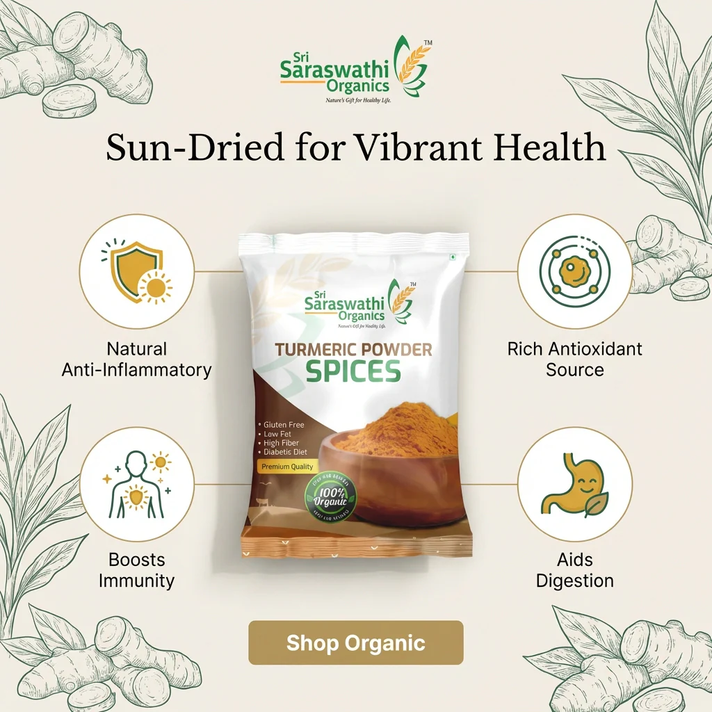 The turmeric roots are naturally sun-dried and ground into a fine powder, making it suitable for savoury dishes, beverages, and homemade herbal face packs. It is rich in antioxidants, Vitamin C, and essential minerals that support daily wellness.
